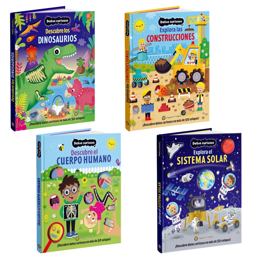 Estos libros invitan a los niños a descubrir el fascinante cuerpo humano y a explorar el misterioso sistema solar, llenos de datos curiosos y divertidos en cada página. Con más de 50 solapas interactivas para explorar y troqueles en las tapas, estos libros ofrecen una experiencia educativa única y entretenida, ideal para despertar la curiosidad y el asombro en cada lectura.